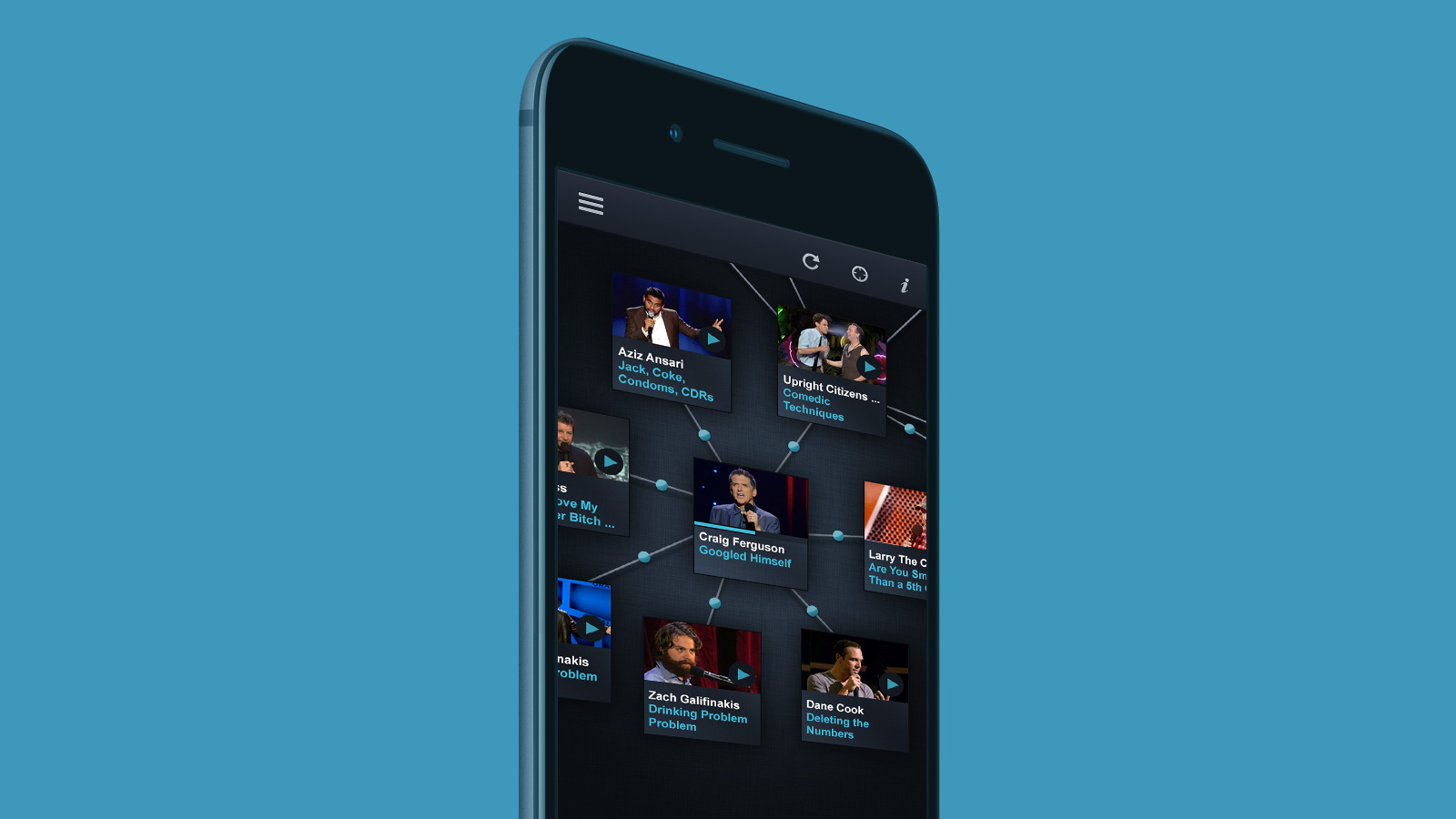 The CC:Stand-Up app gave you free access to Comedy Central's massive library of stand-up from your favorite comedians. While staying true to the channel's identity, I was tasked with designing an interface that was slick, intuitive and followed the design trends of the time.